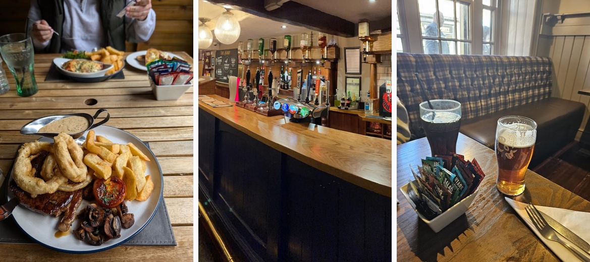 Great food with welcoming staff. Food was served in good time even though they were busy. Food was fresh and good sized portions. The bar serves a good selection of beers, wines and spirits. Good price for food and drink. Dog friendly inside and even served the dog some treats when we sat down.